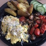 Rührei mit Parmesan, gebratene Tomaten und Pilze, Bratkartoffeln mit Knoblauch-Vanille-Salz. ðŸpic.twitter.com/hXk49uG9Xa49uG9Xa