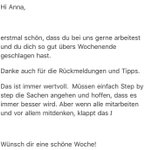 Beispiel für einen guten Umgang mit einer freundlichen Beschwerdemail einer Mitarbeiterin: