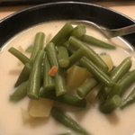 Die Bohnen sind so gut, die quietschen noch in meinem Mund. Ich liebe Bohnensuppe a la Großtante.